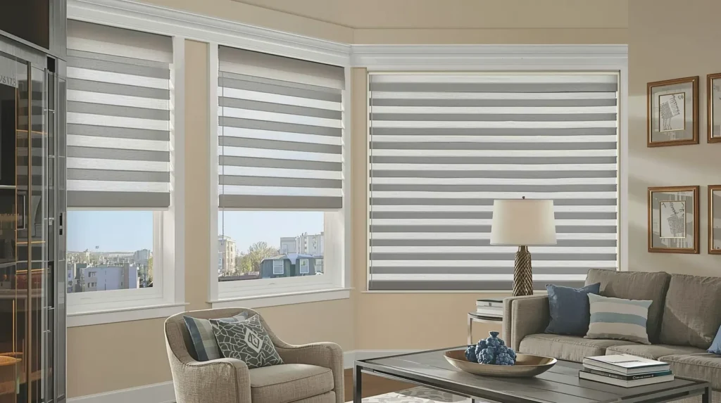 - Zebra Blinds – Alternate sheer and opaque stripes for adjustable privacy control.