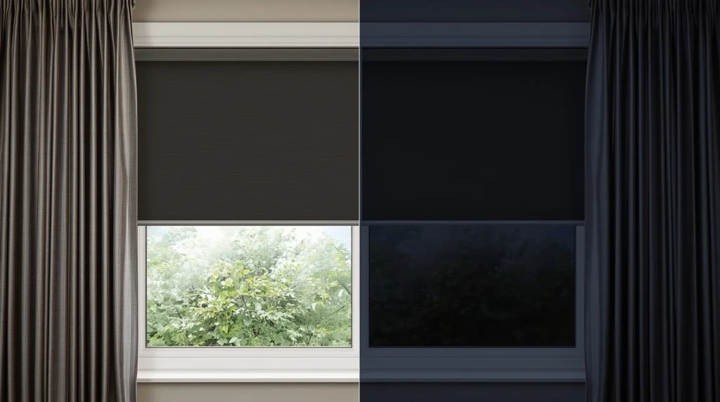 At night, the effect changes. When interior lights are on, the inside becomes brighter than outside. That means the one-way privacy is reduced. For full nighttime privacy, many homeowners pair roller blinds with curtains or layer them with blackout shades.