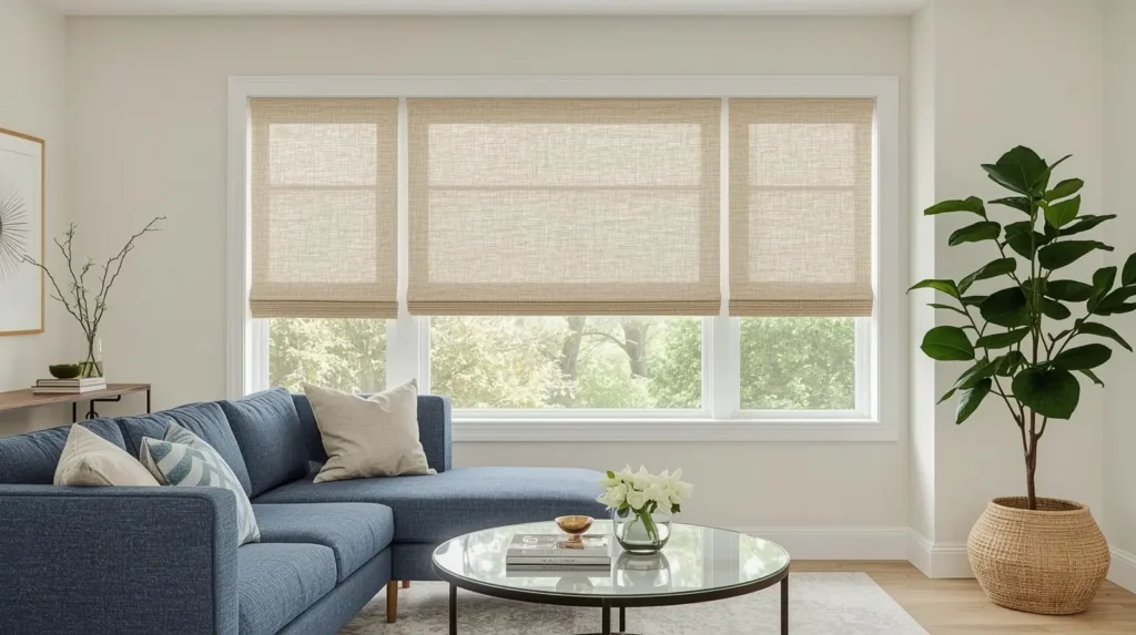 These shades help reduce heat and improve comfort while keeping a clean, modern look. - Roman Shades